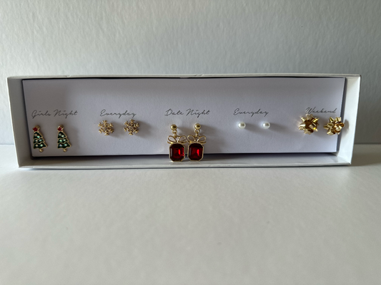 Christmas box earring set (five holiday themed earrings)
