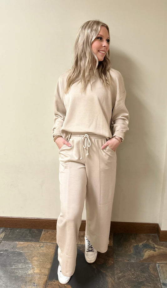 Scuba drawstring pants with side pockets and side slits