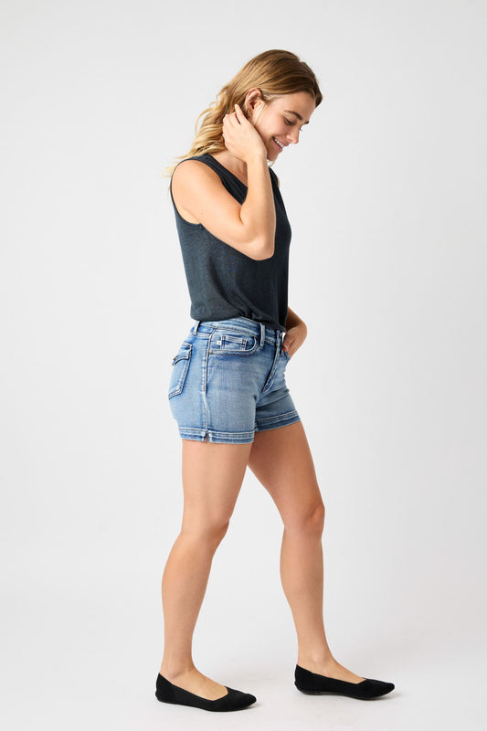 Judy Blue Mid-Rise Heavy Contrast Faux Flap Pocket Shorts