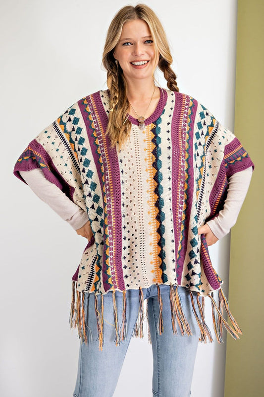 Been a while multi-color Knitted Poncho Sweater