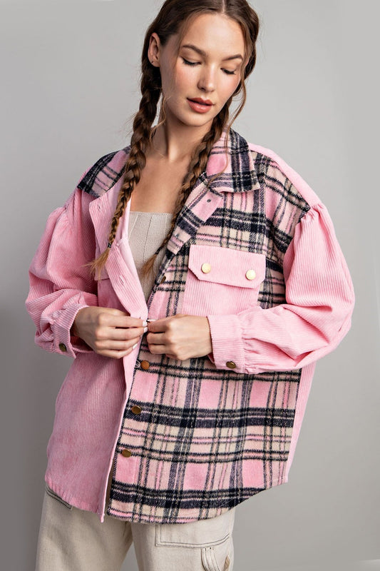 Bubble pinksoft washed corduroy button down jacket