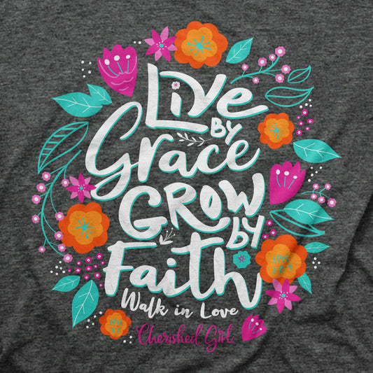 Cherished Girl Live by Grace, Grow by Faith, Walk in Love Tee