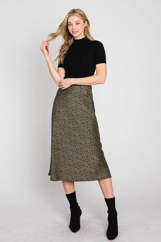Dotty Leopard Print Tea Length Silk Satin Skirt