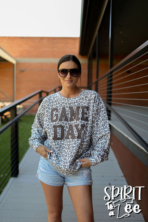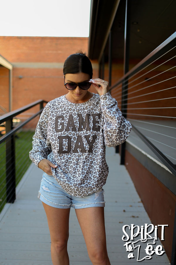 - Shown on a Leopard Cozycord Crewneck w/ Side Slits