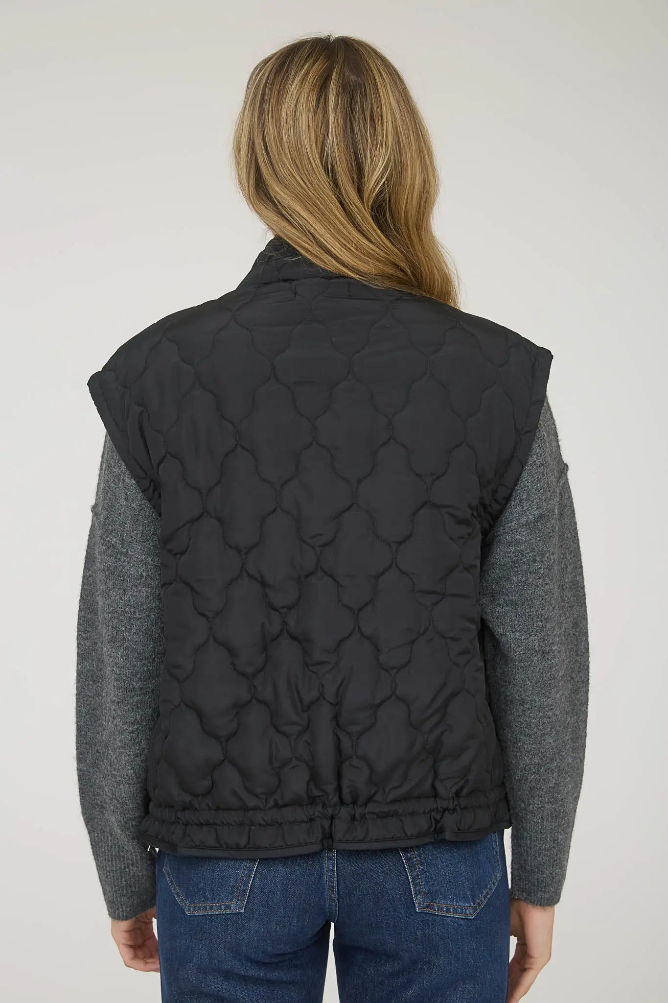 Tie Detail Snap Button Down Quilted Puffer Vest