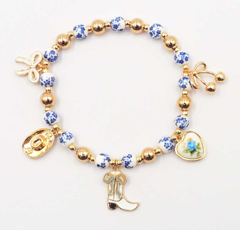 Western Charm with Blue Ceramic Beaded Stretch Bracelet