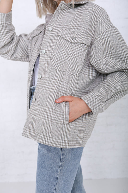Plaid collared zip-up neck long sleeve sherpa overwear