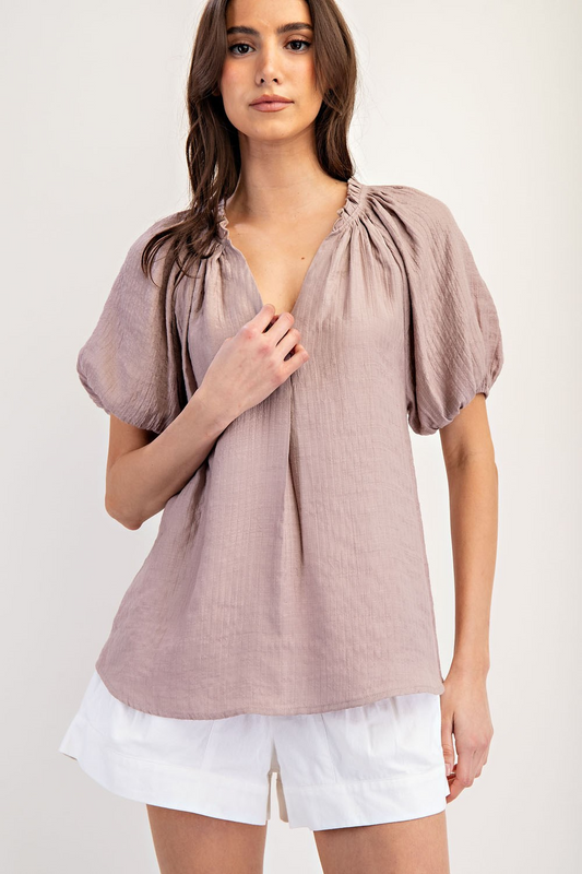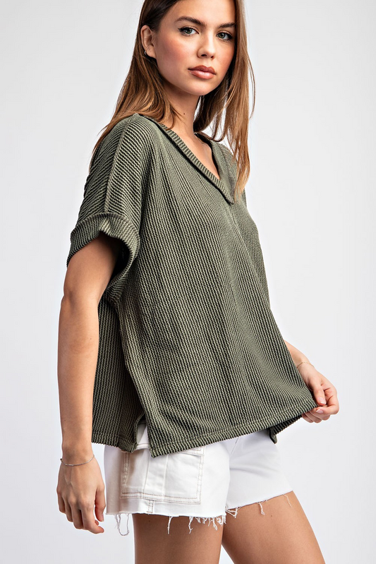 Les Amis ribbed sweater top with short sleeves and front pocket