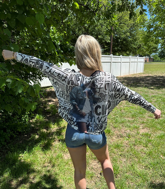 Mandarin collar with ruffle details and double layer ruffle sleeves and round hem top blouse