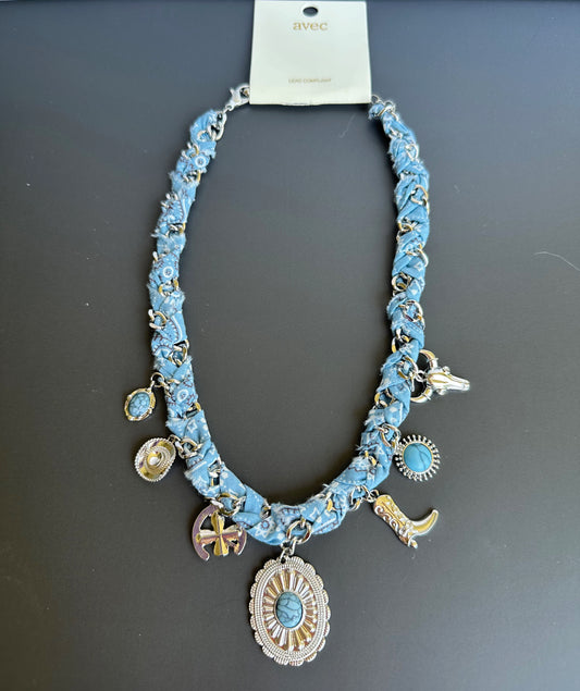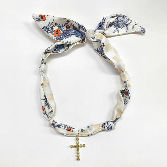Scarf Necklace Beige/Navy with 1.25" Bubble Cross, VERY POPULAR!!