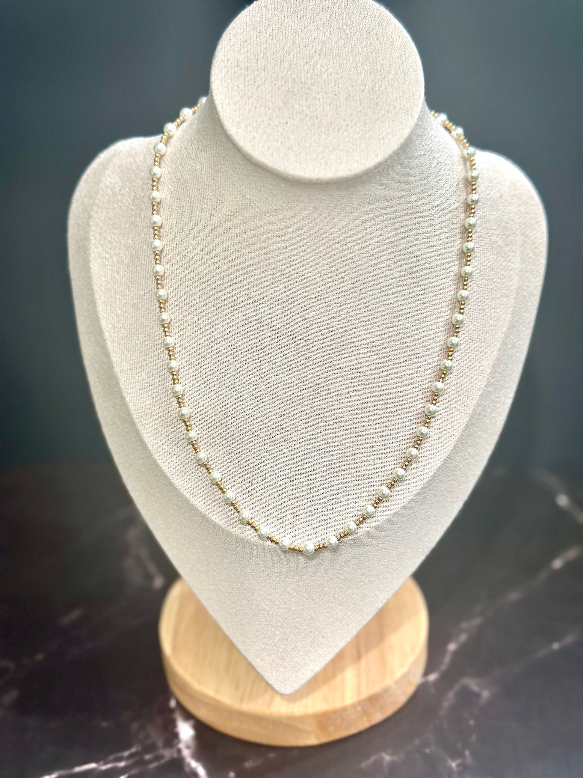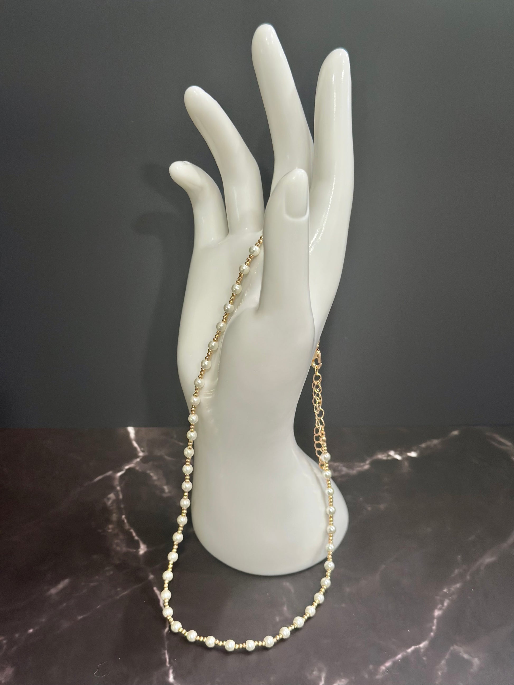 Water Resistant 4mm Pearl and Gold Beaded 16"-18" Necklace