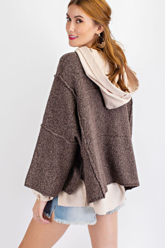 Oversized wide sleeve sweater with rounded neckline