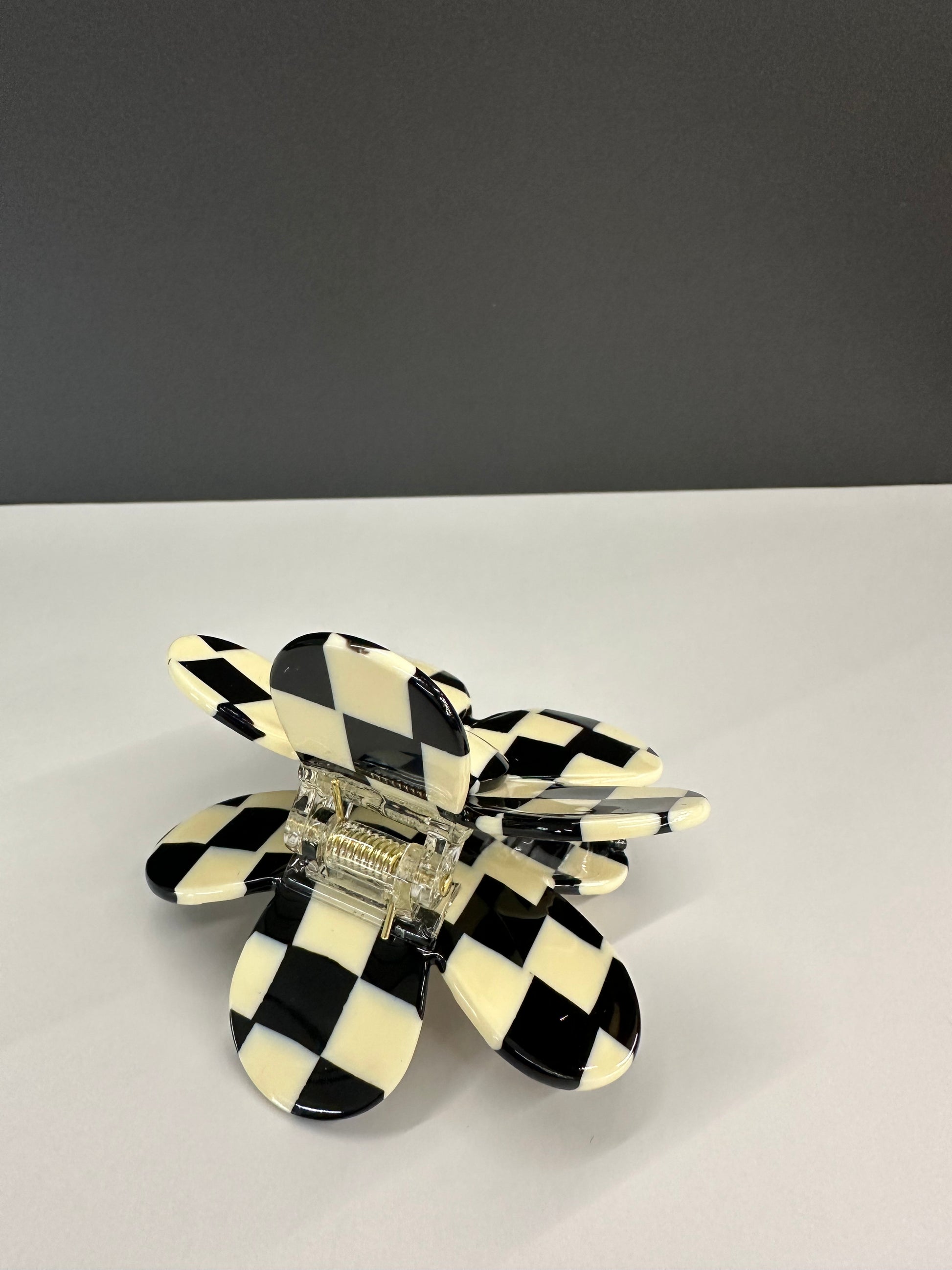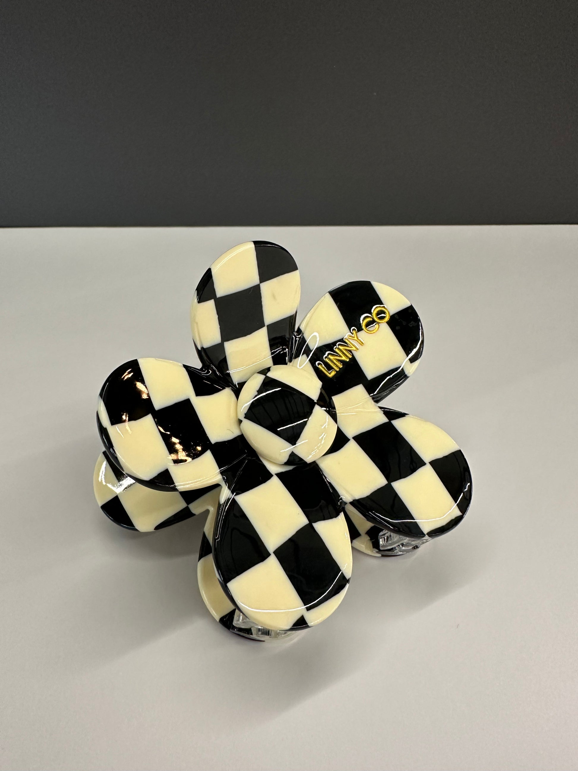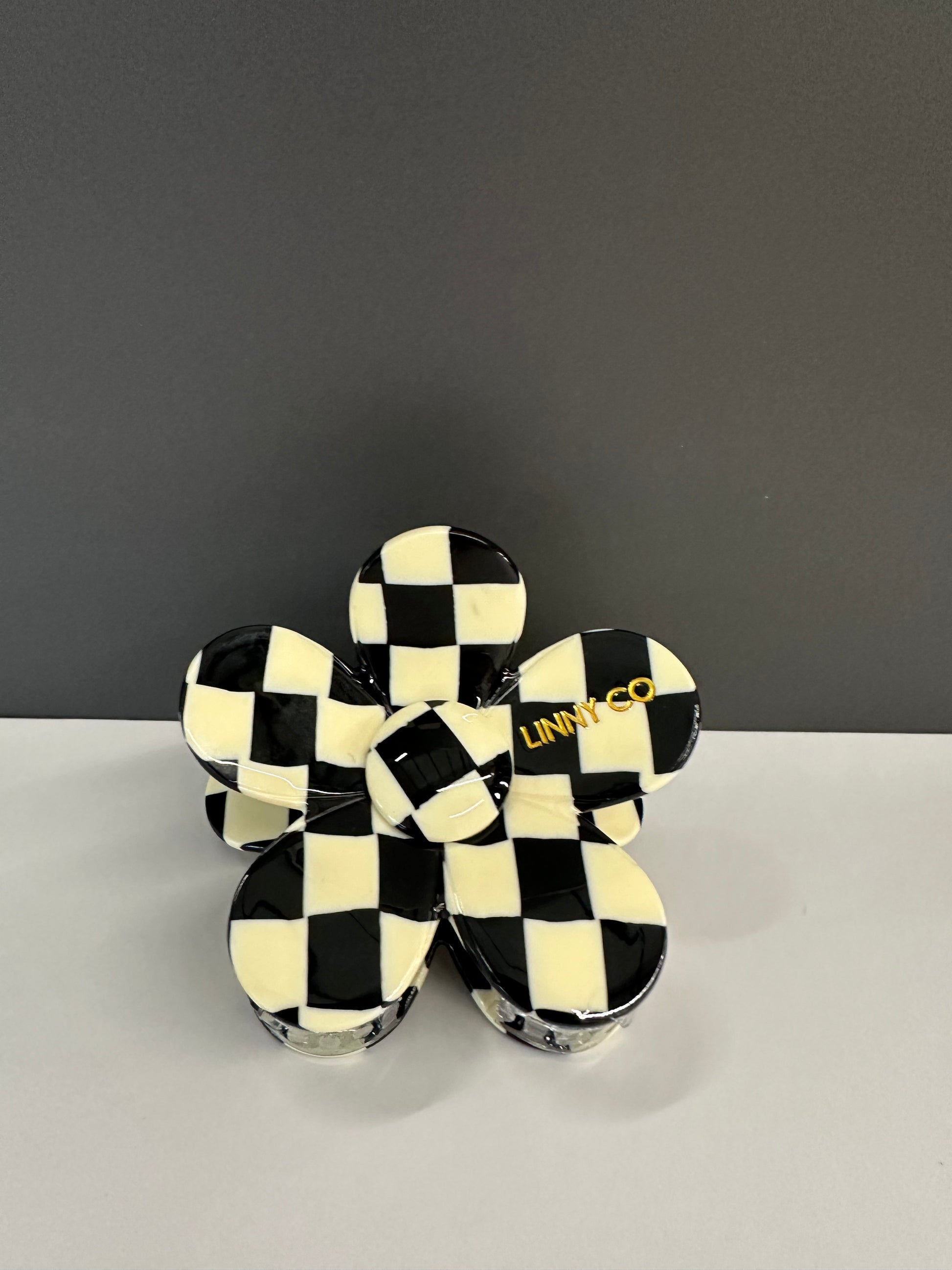 Black and White Checkered with a glossy finish. LINNY CO branded in gold.