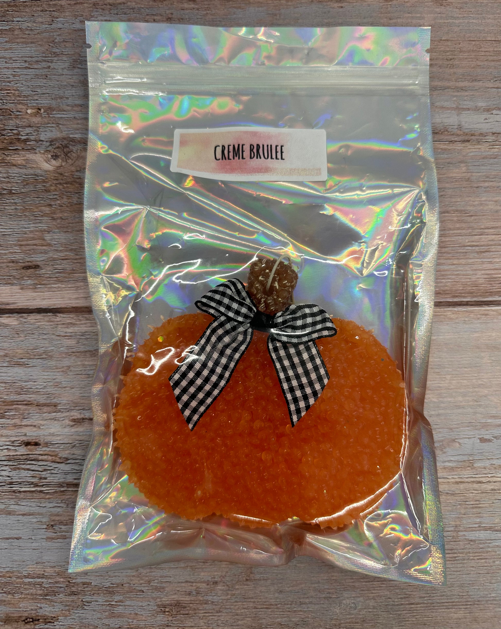 This Pumpkin Fall Freshie is the perfect autumnal accessory for your space. This delightful freshie is shaped like a vibrant orange pumpkin and features a charming black and white checkered ribbon tied to its stem. Infused with the rich and indulgent scent of Creme Brulee, it will bring a cozy and inviting aroma to any room. Embrace the season with this festive and fragrant addition to your decor.