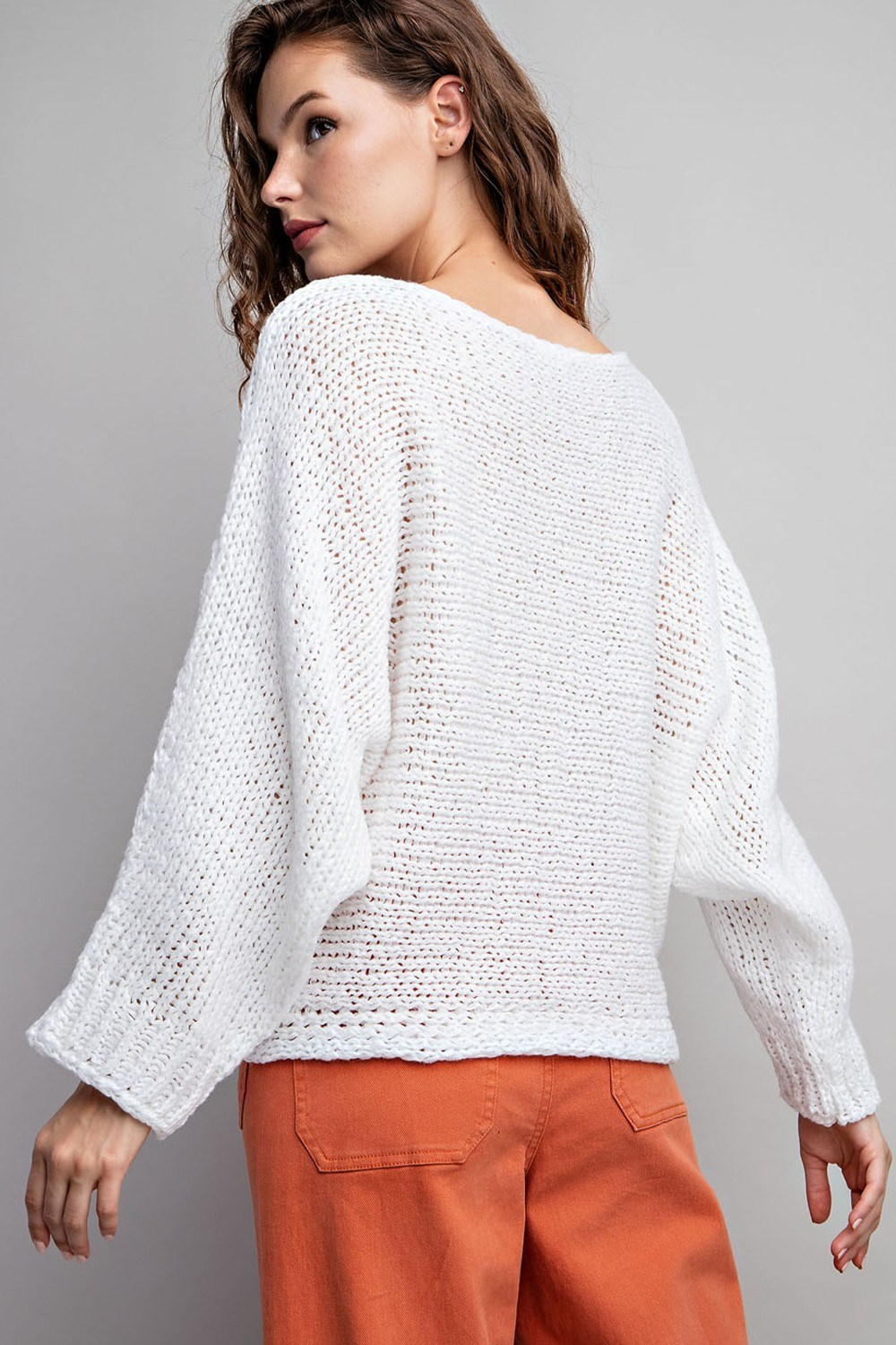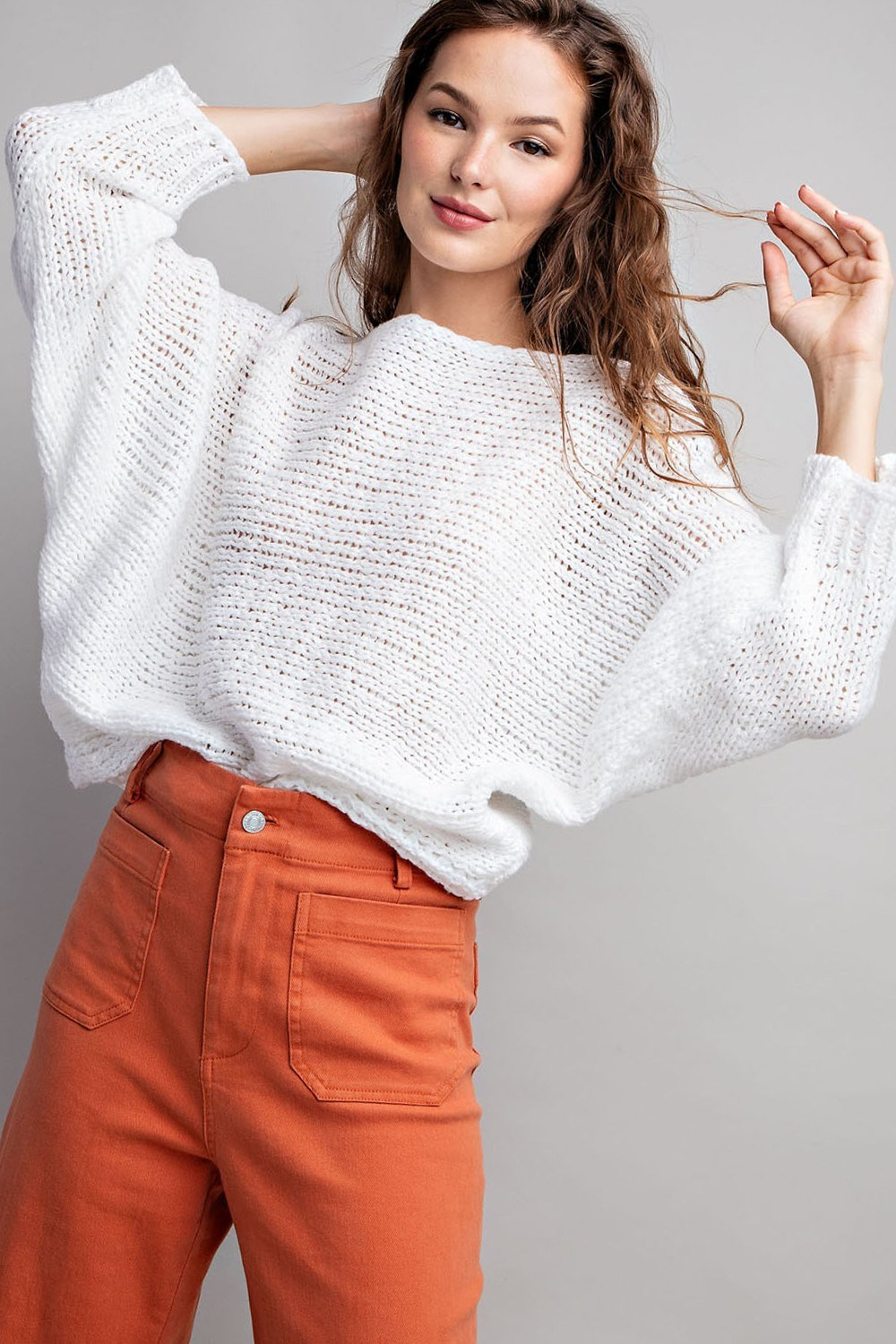 Take your first step toward Fall wearing this Loose fit knit sweater top. Comes in multiple colors.