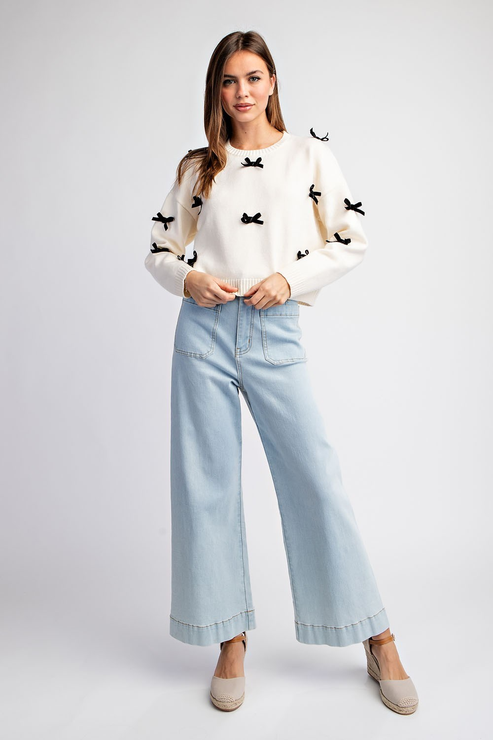 We love our bows and you're going to love this Ribbon point long sleeve sweater!